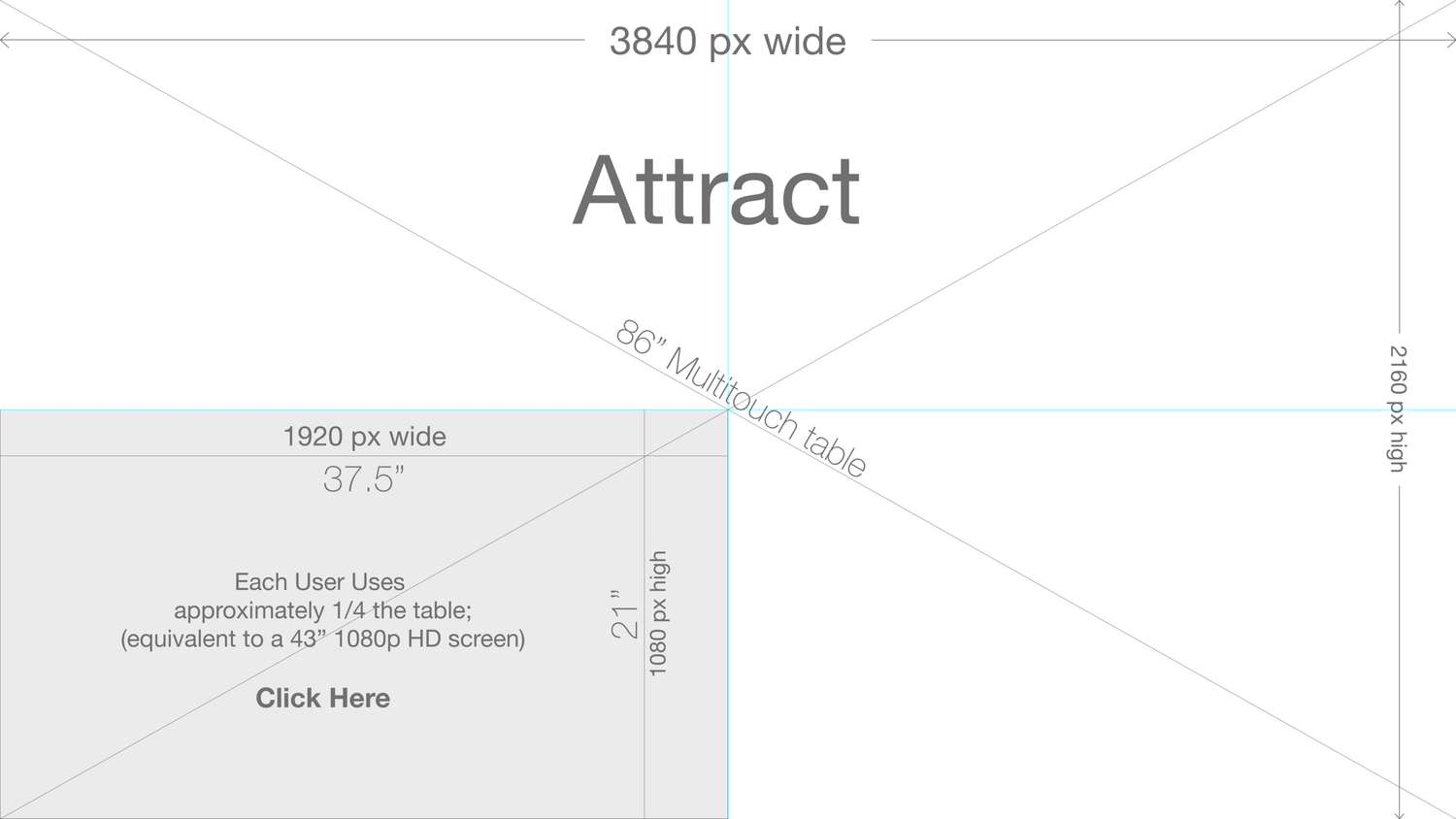 Then we walked through the experience with him. He notices the attract, he sees the similarity to other media in the space, but also how it differs. He touches the table. He soon has company, because this is a multi-user table. He sees an array of content. He touches one of the images, and the content reacts dynamically. We imagined a “public feed” that would be based off of user-generated content. And we described an upvoting/sharing functionality for the table.