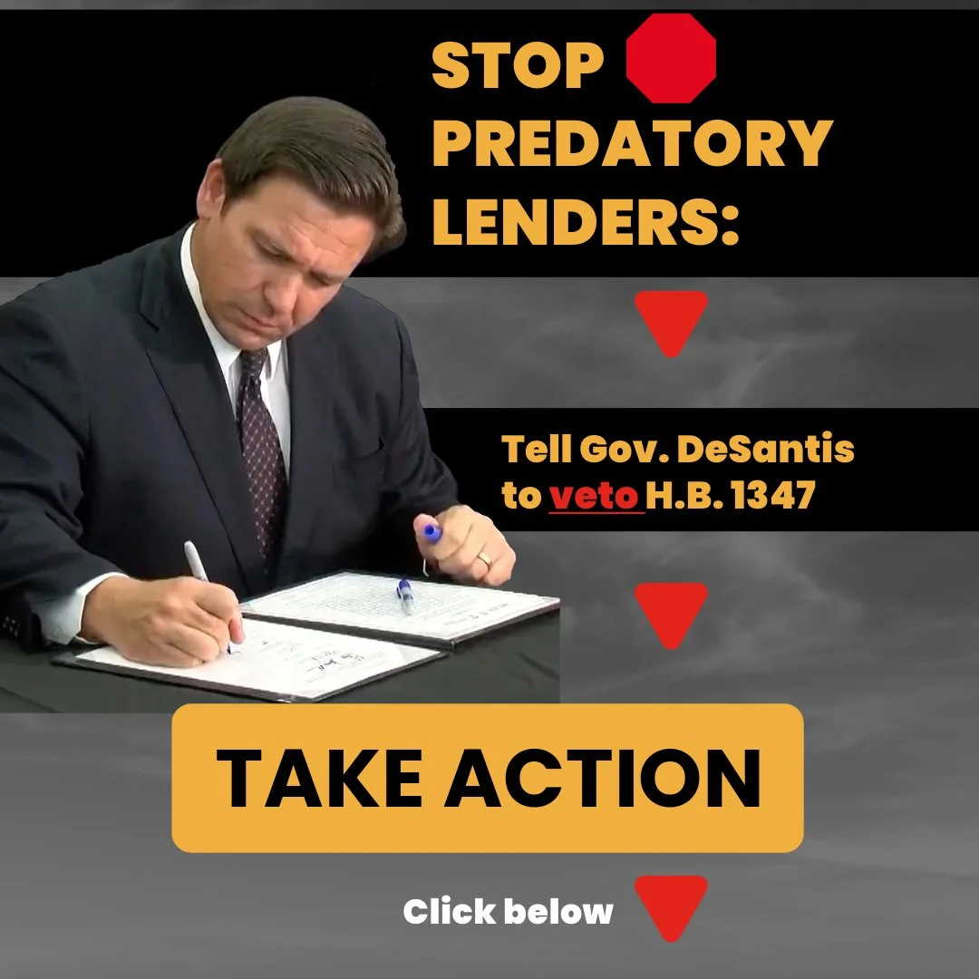 Text message to Floridians to take action to stop a predatory lending bill